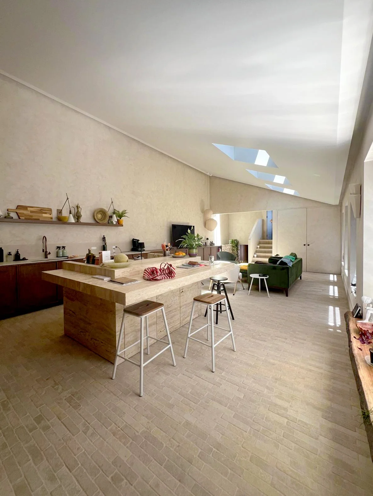 A pivotal architectural gesture was the modification of the living area ceiling, which was raised and reshaped to dramatically increase the perceived volume of the space. This intervention not only enhances the scale and verticality of the interior but also significantly improves airflow and thermal comfort, aligning with the home’s coastal setting.